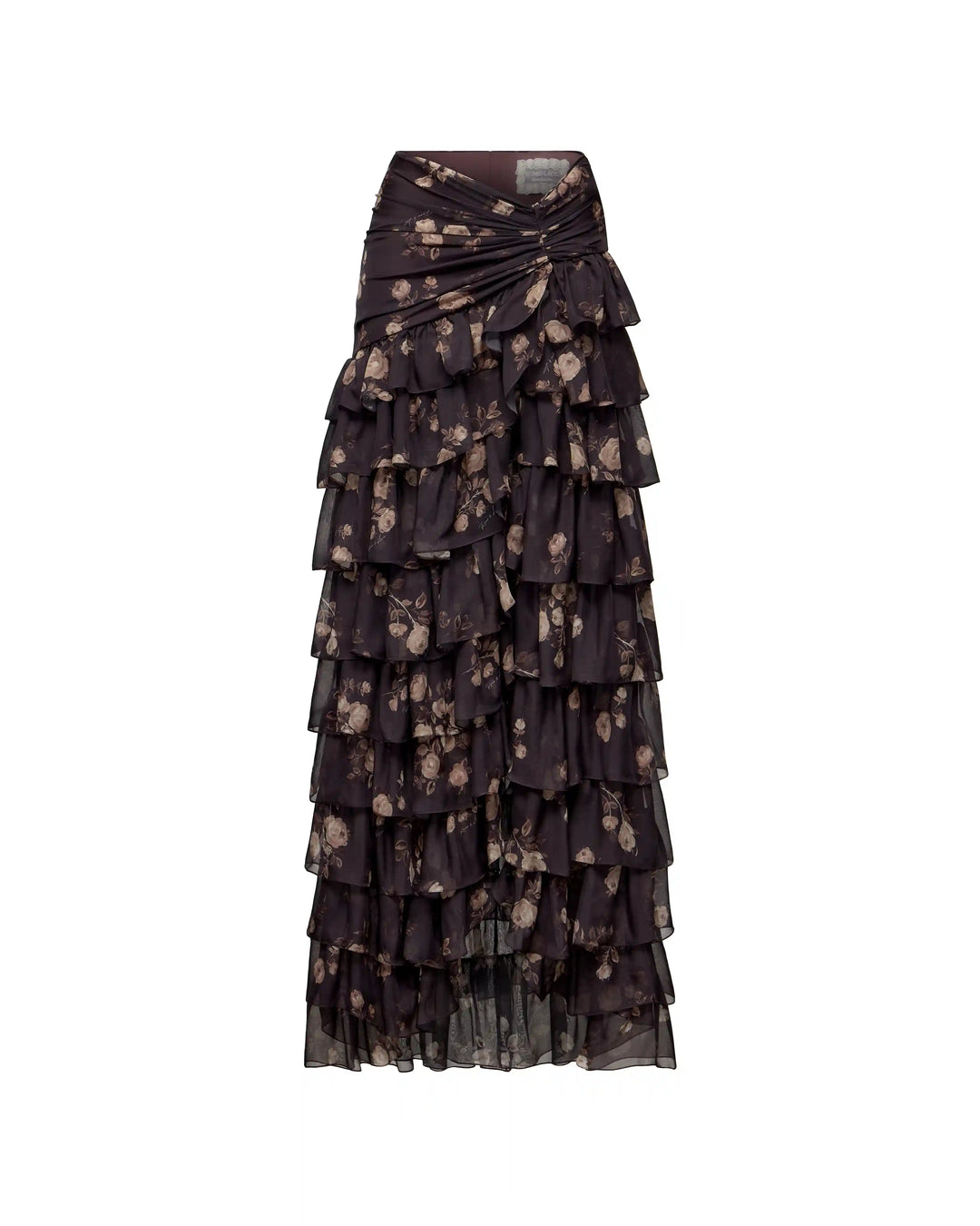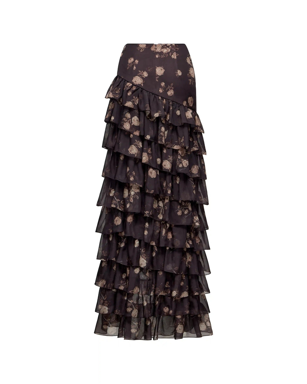 Lissa, maxi skirt made of chocolate chiffon with floral print