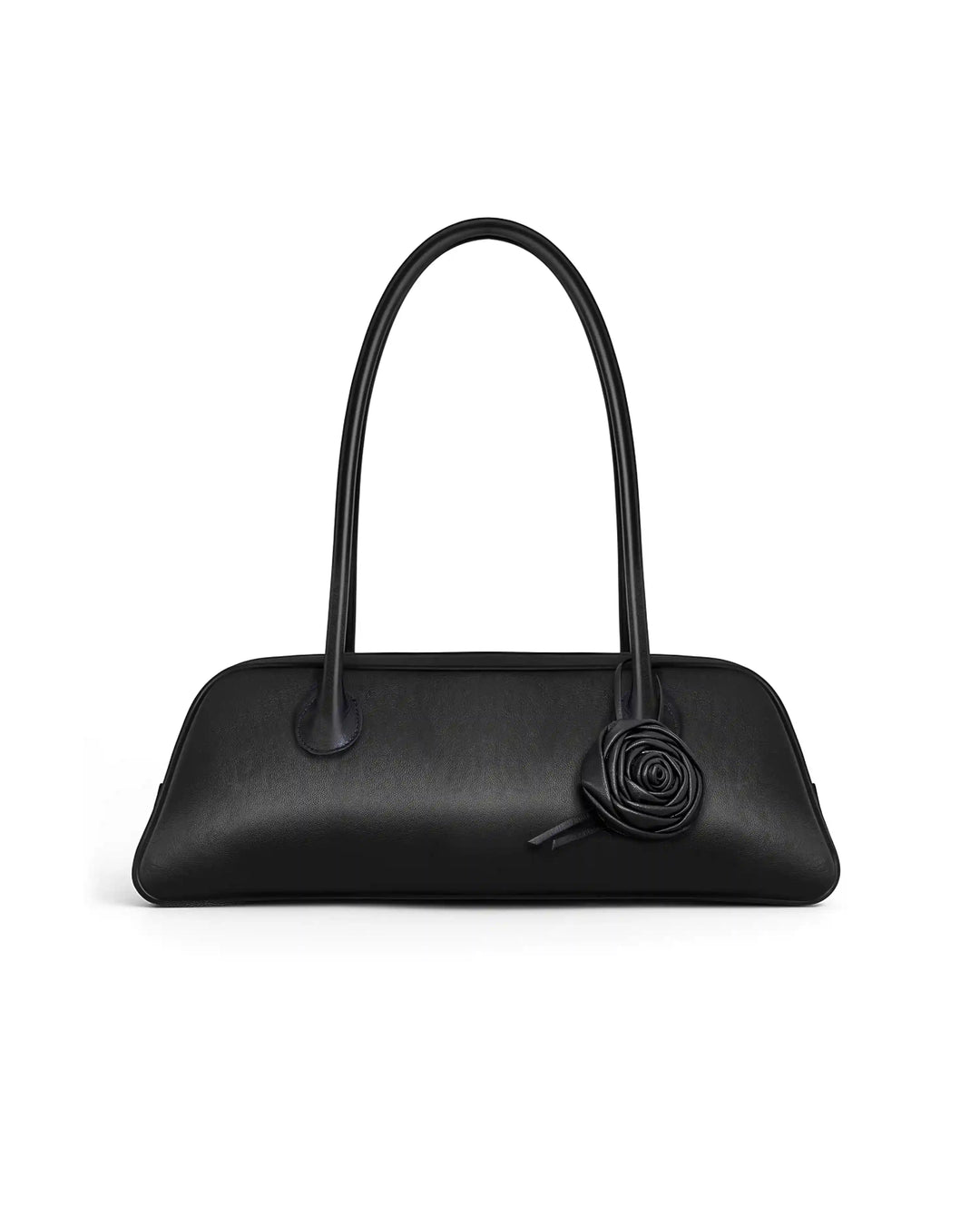 Ollie, bag made of black genuine leather with a floral print and a rose charm