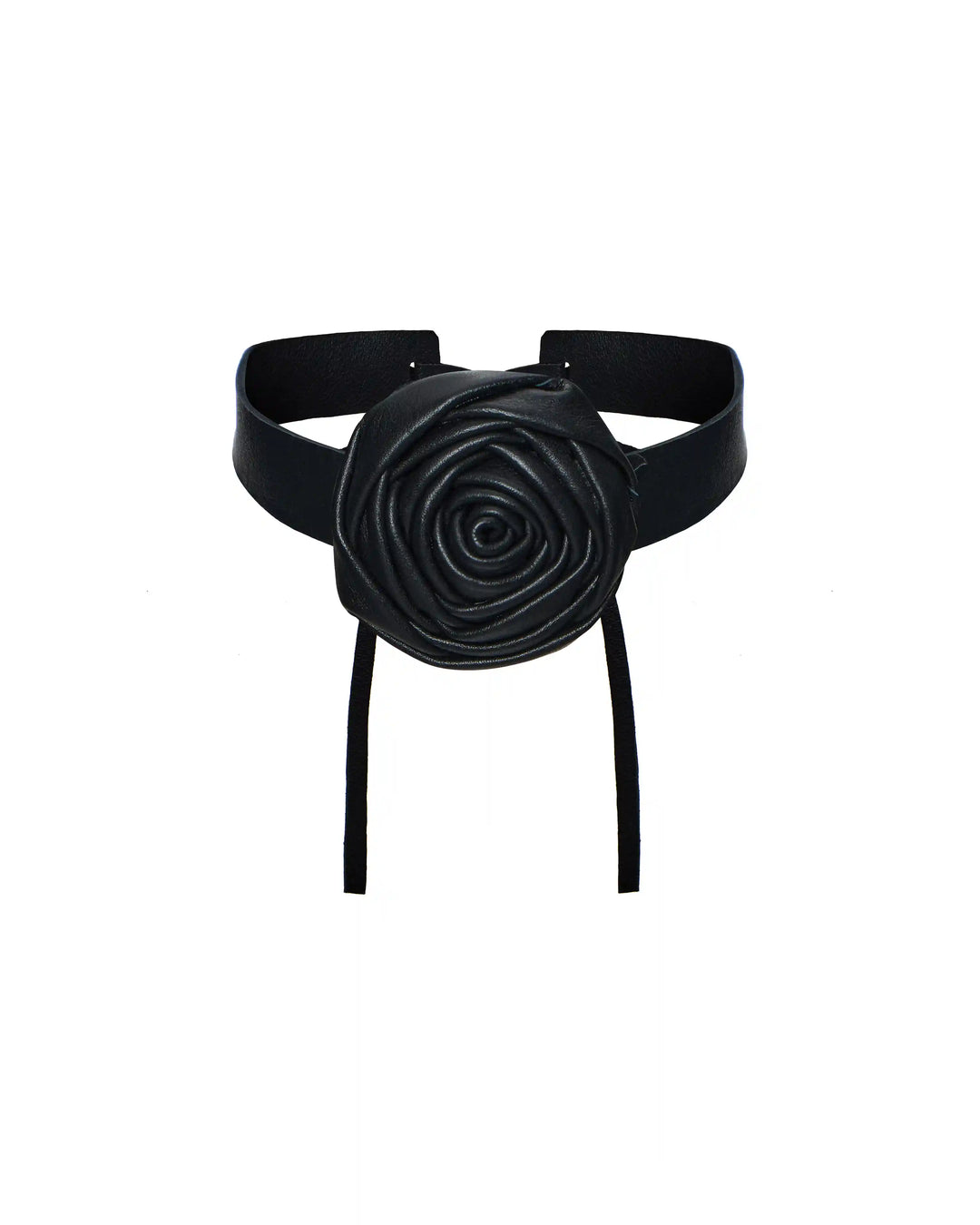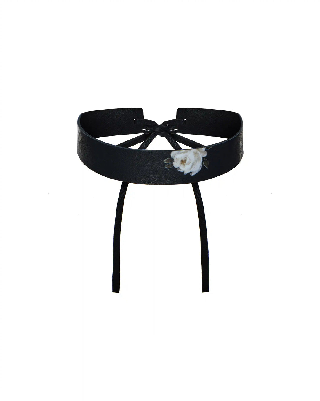 Lydia, сhoker with a rose made of black chiffon with a floral print and a velvet ribbon, adjustable