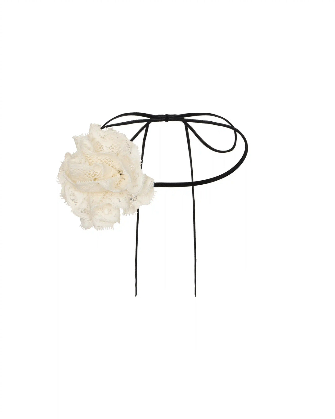 Lydia, сhoker with a rose made of ivory lace and a velvet ribbon, adjustable