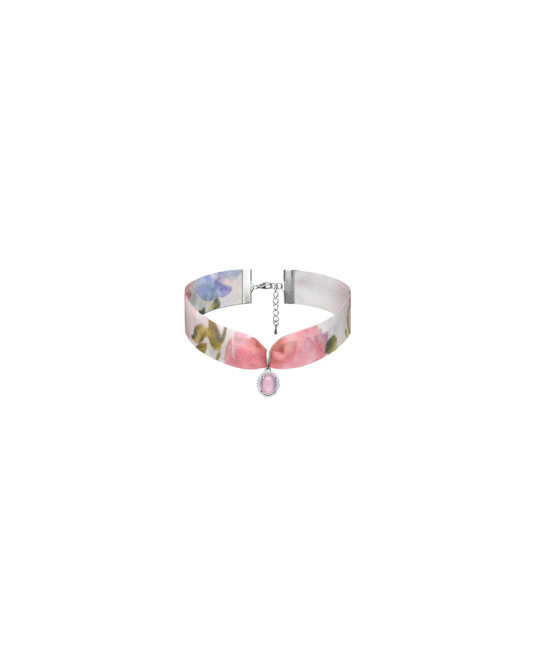 Arin, milky chiffon choker with a floral print and pendant detail