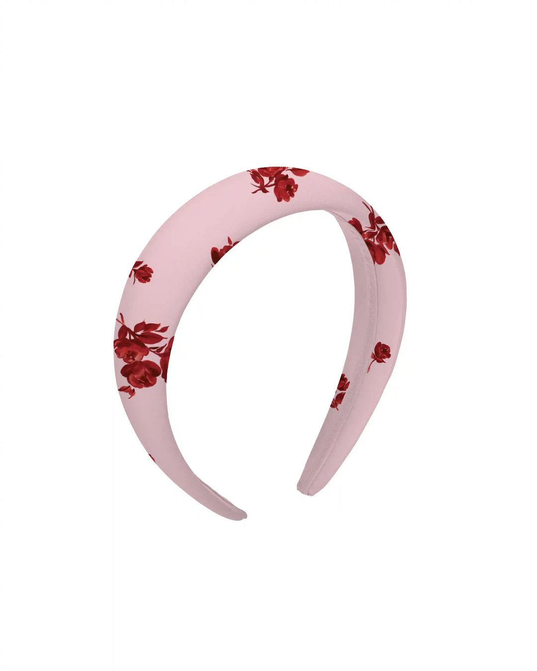 Noelia, wide light pink satin headband with a floral print