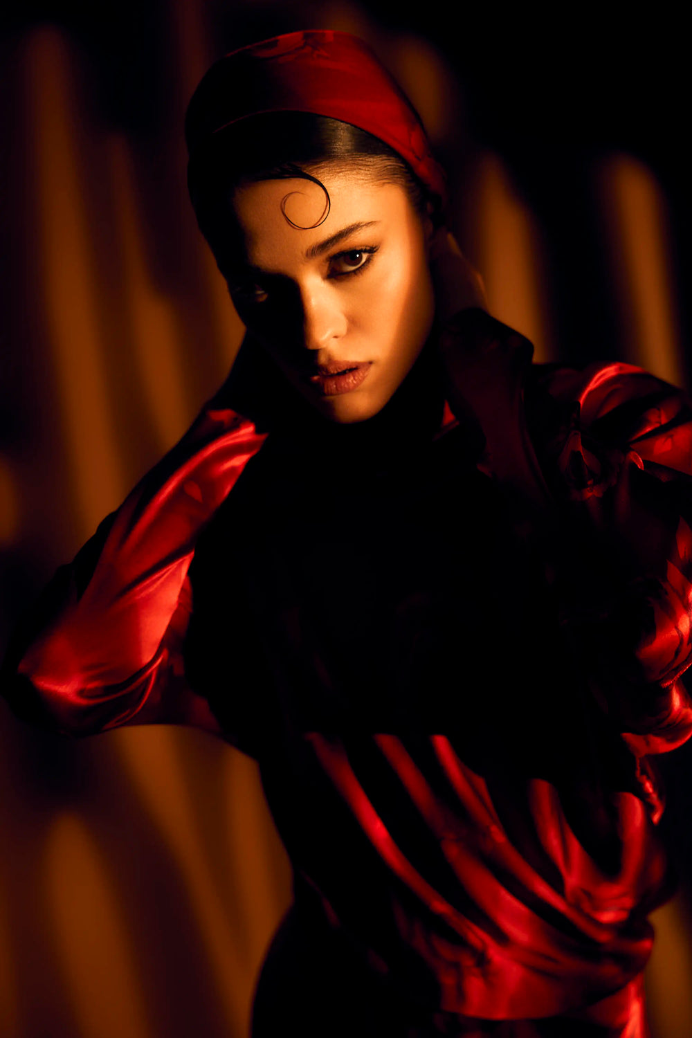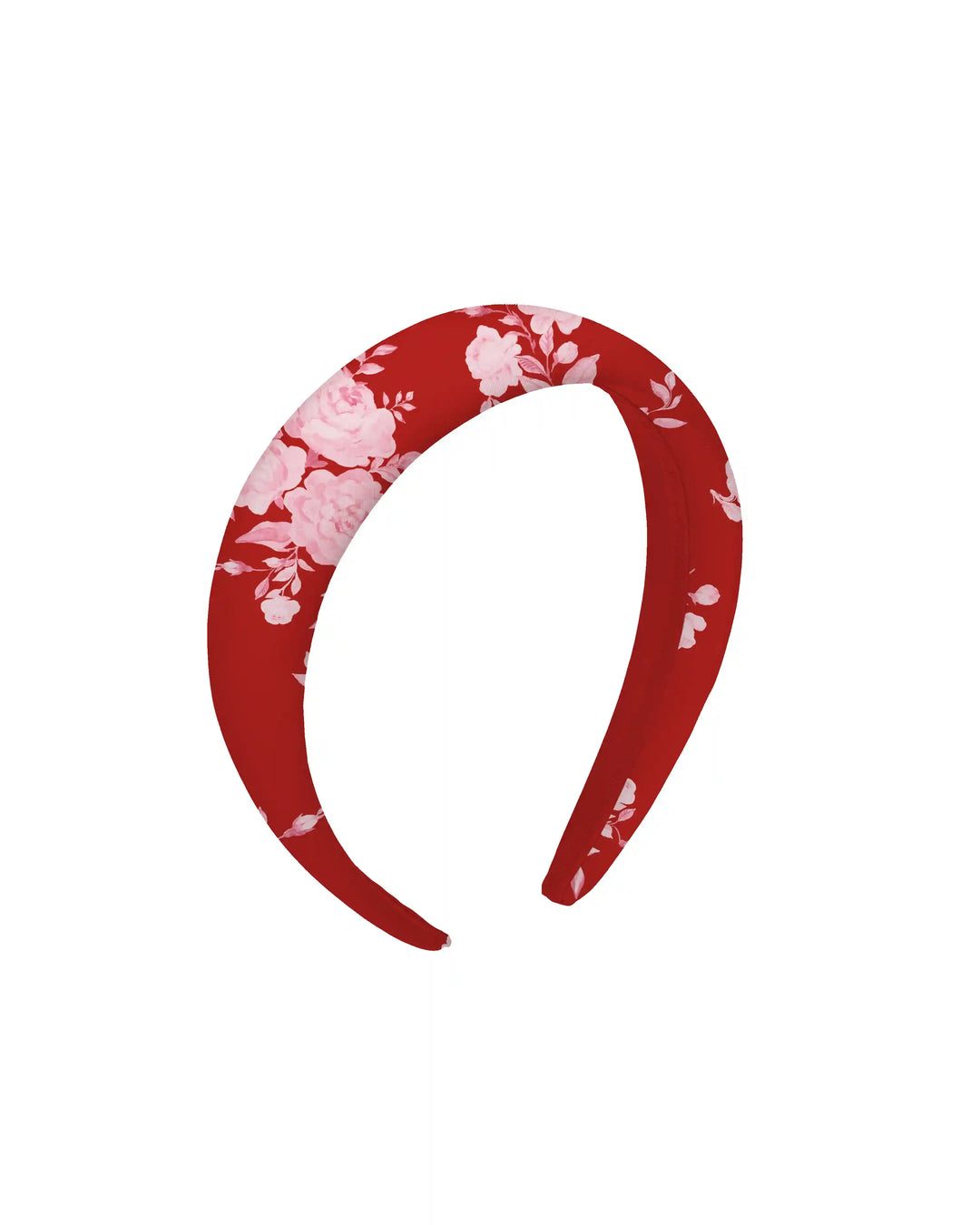 Noelia, wide red crepe de chine headband with a floral print