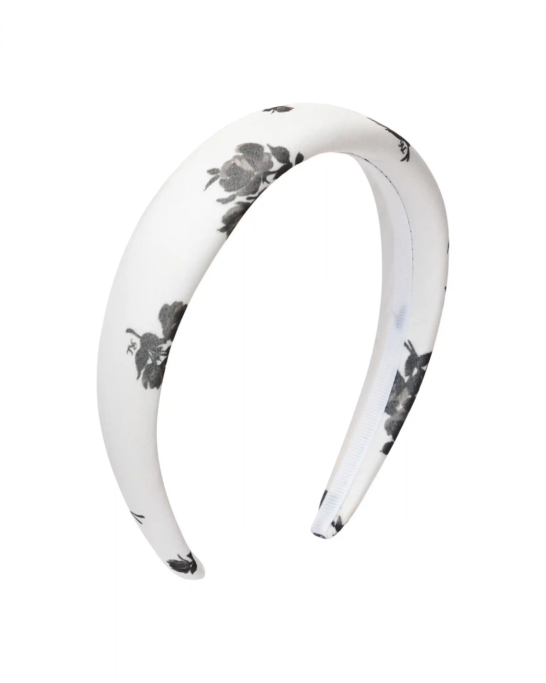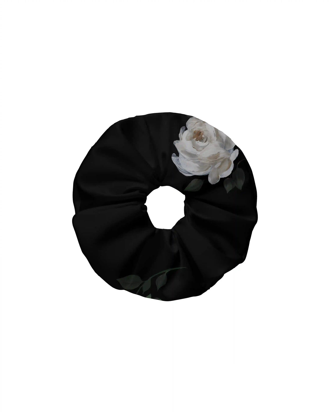 Bruna, hair tie made of ivory crepe de chine with floral print