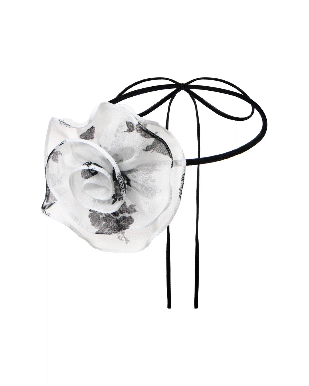 Lydia, choker with a rose made of ivory chiffon with a floral print and a velvet ribbon, adjustable