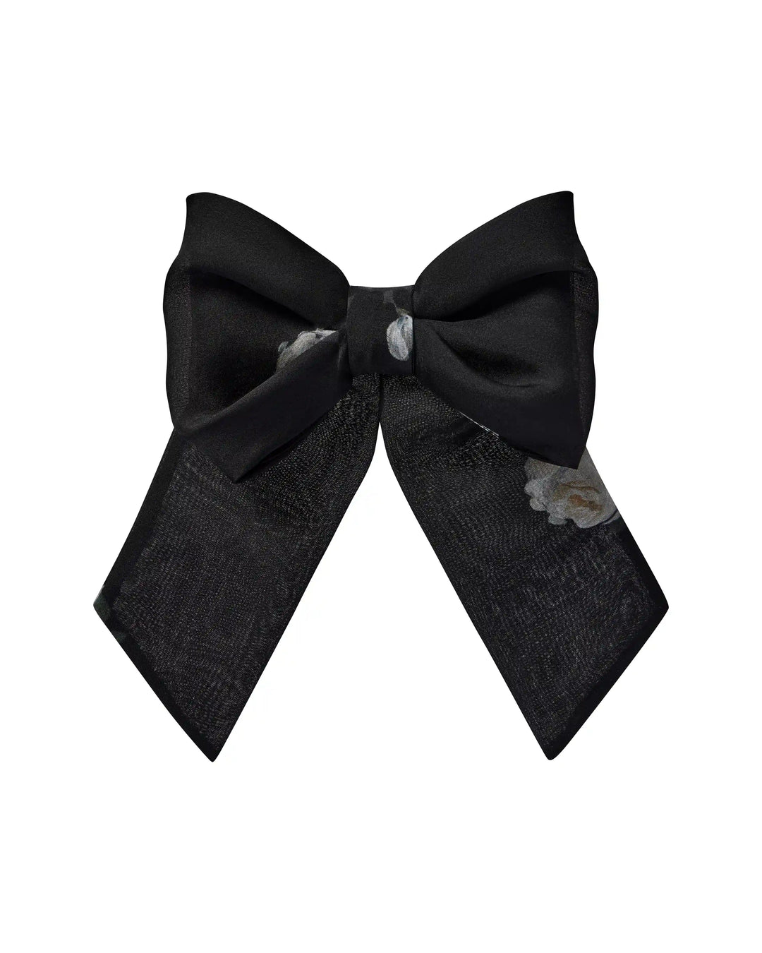 Mirella, hairclip bow made of ivory chiffon with floral print