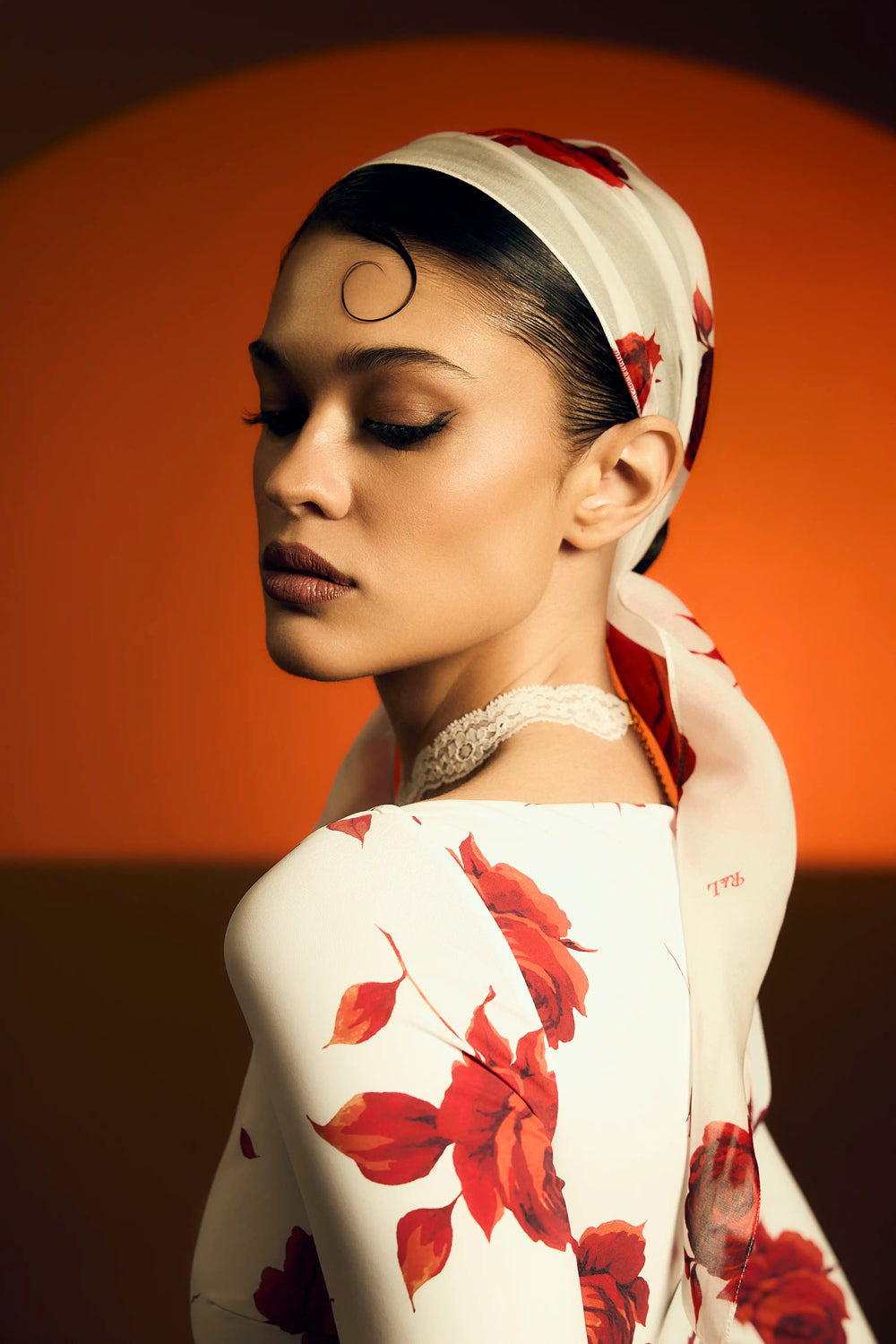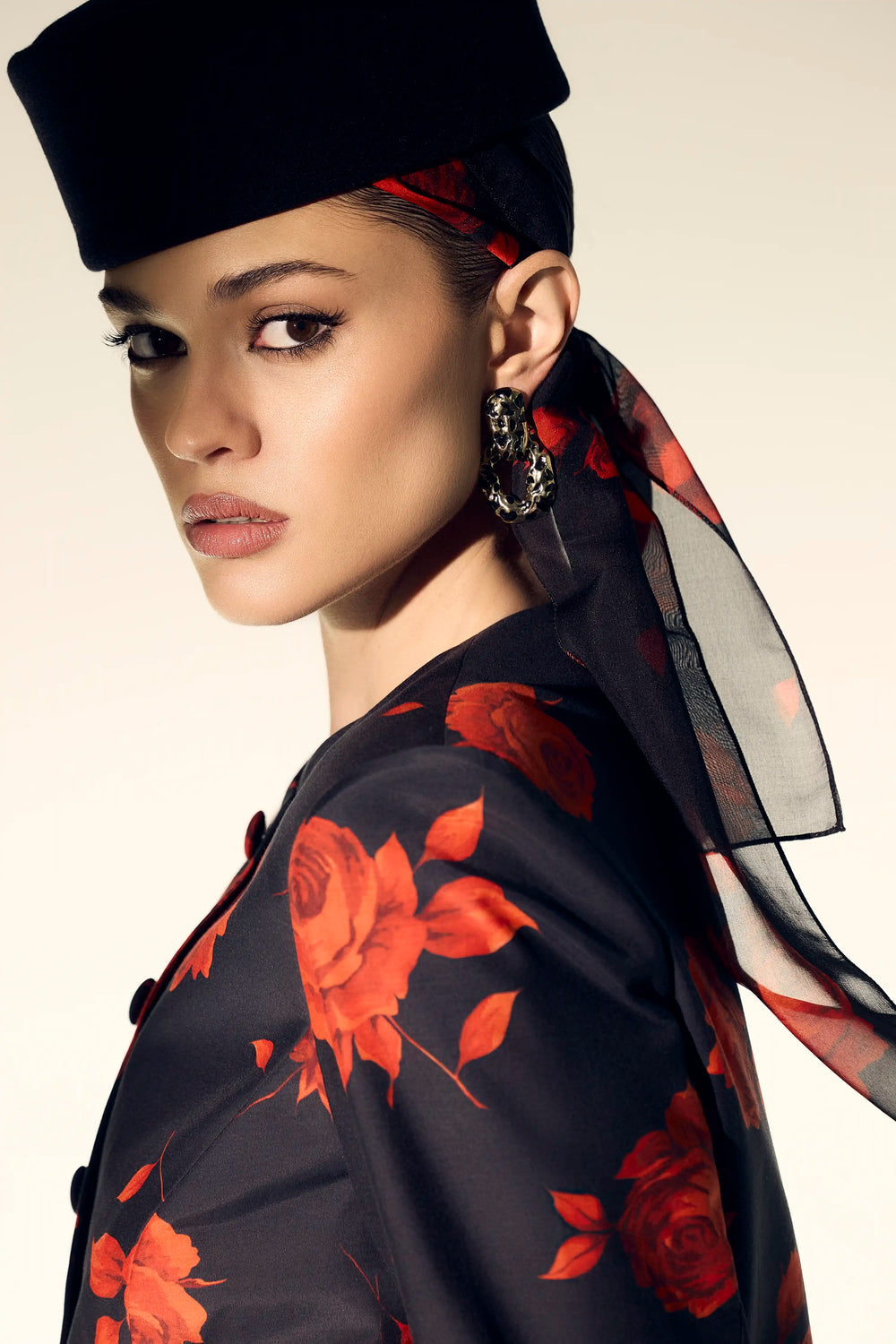 Leticia, milky chiffon headscarf with a floral print