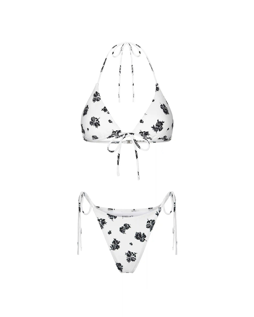Gill, set of two-piece swimsuit and pareo made of biflex in ivory with small light pink flowers