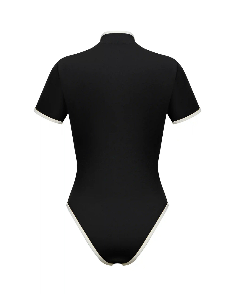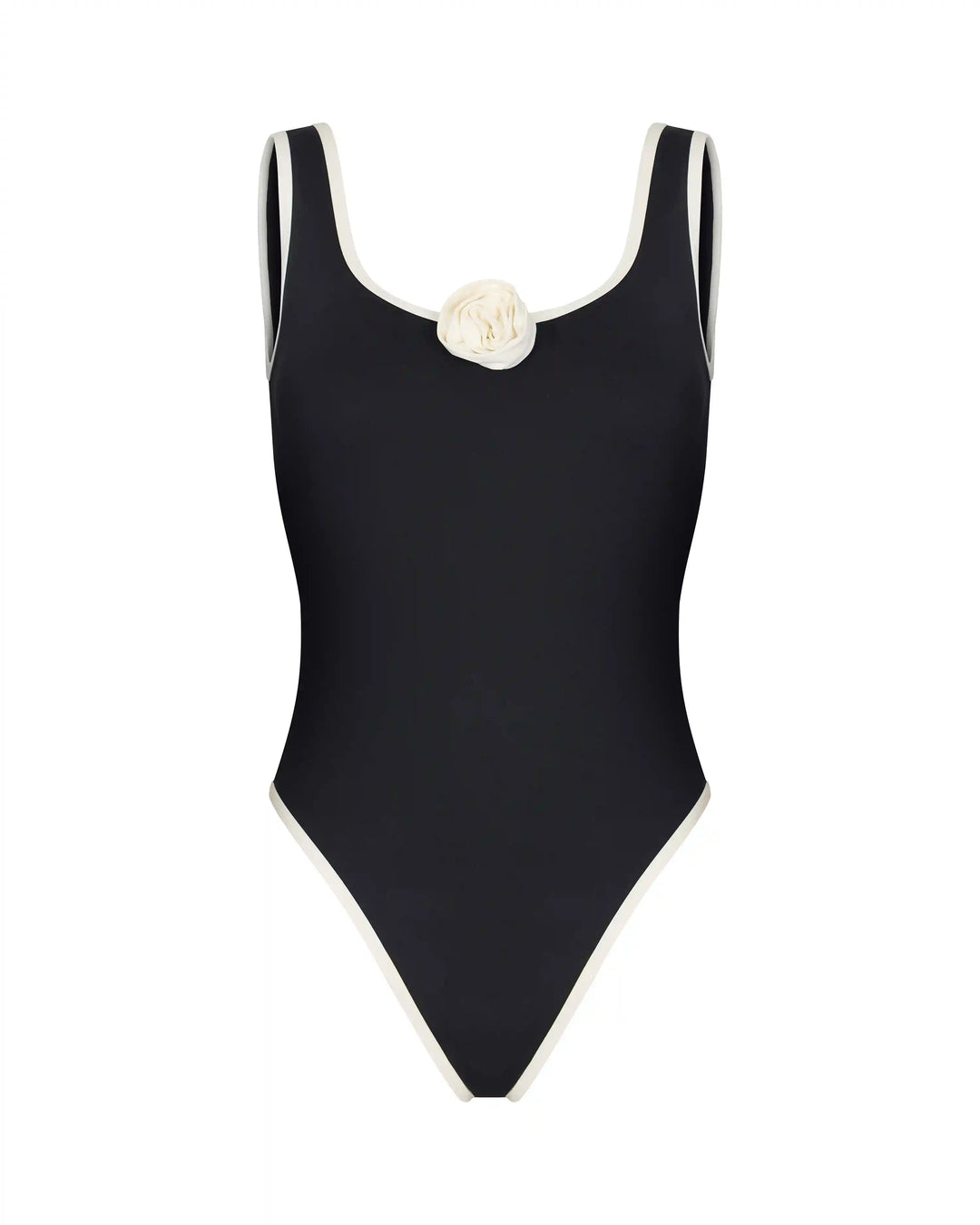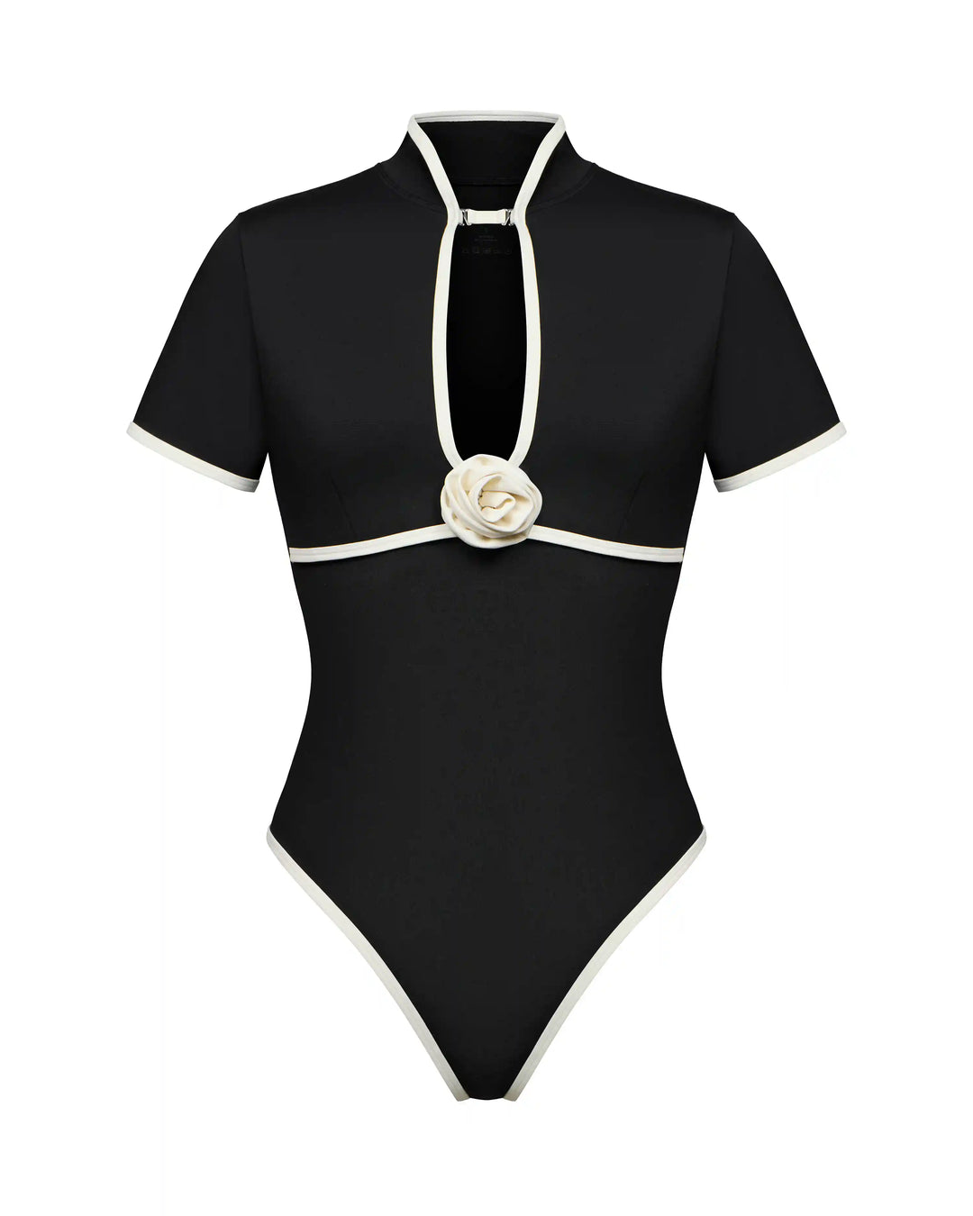 Sakura, one-piece swimsuit made of black biflex with a rose