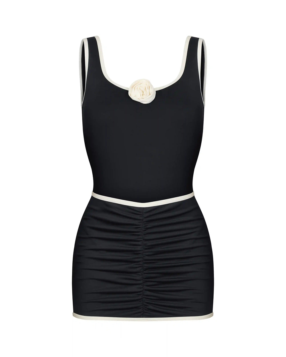 Sarah&Samantha, set of one-piece black swimsuit and a skirt made of biflex with a rose