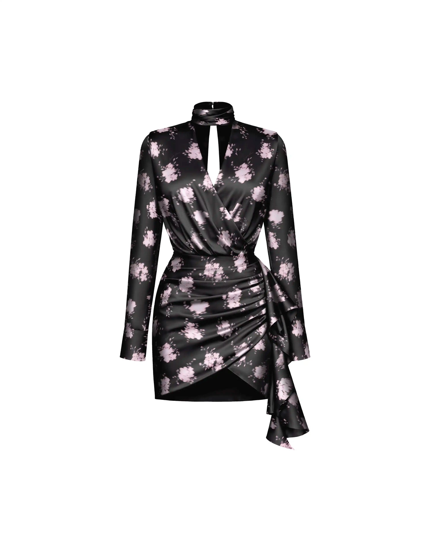 Mini dress in black satin with floral print