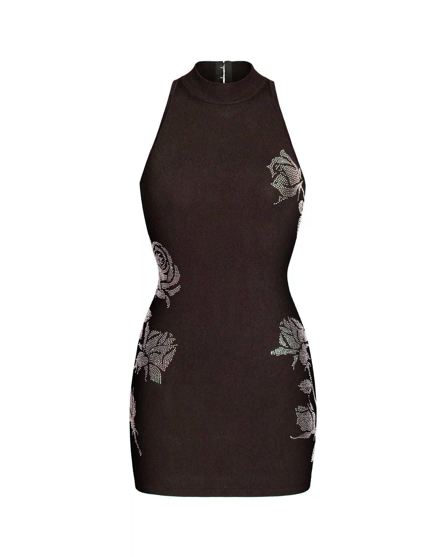 Viva mini, mini dress made of chocolate cotton with rhinestones