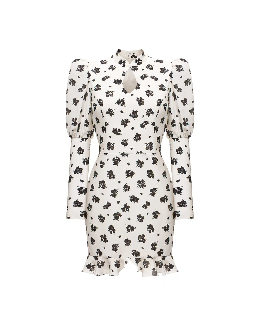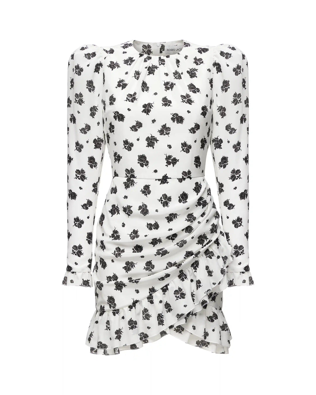 Charlotte, mini dress made of ivory crepe de chine with floral print