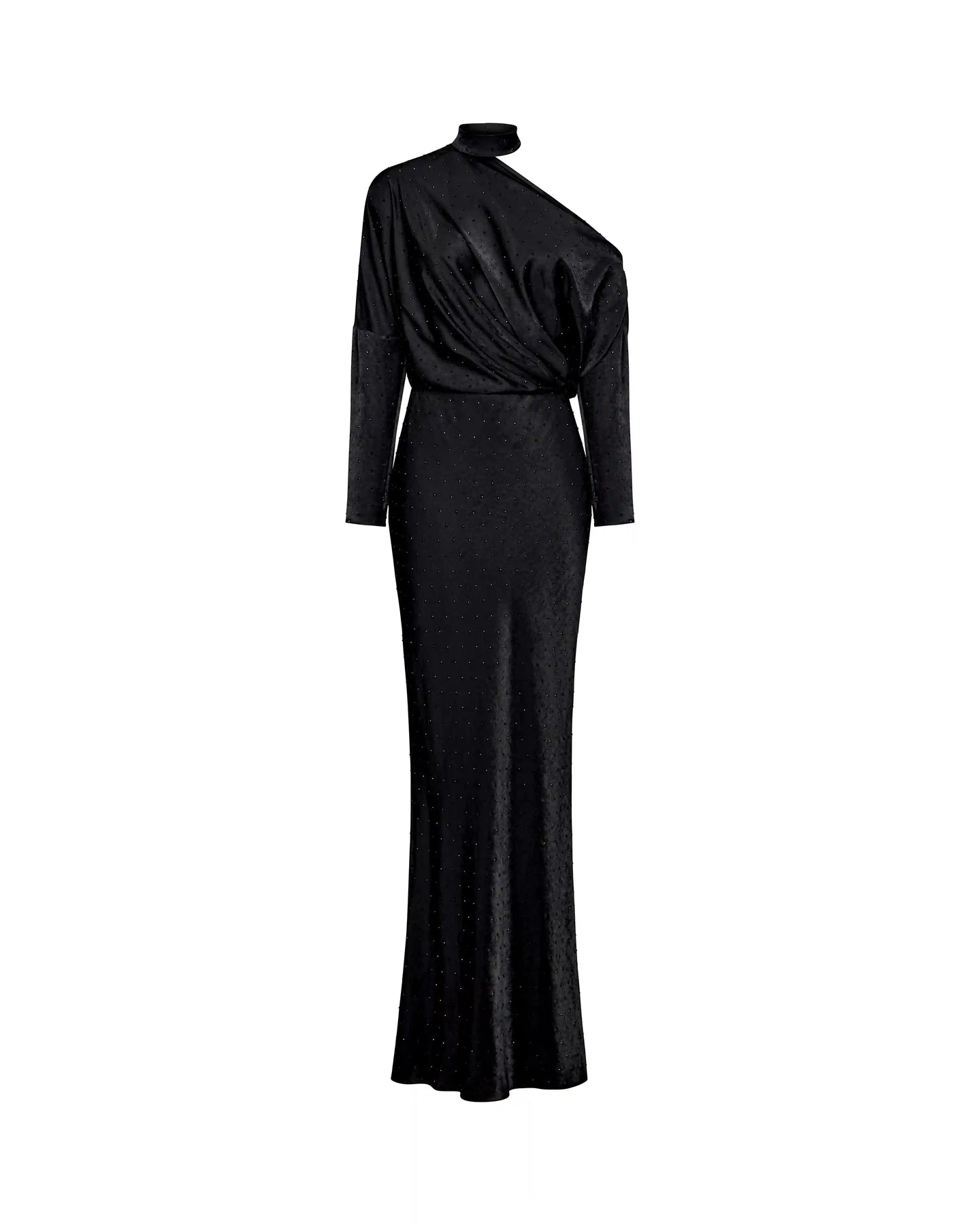Anika maxi, maxi dress made of black rayon with rhinestones