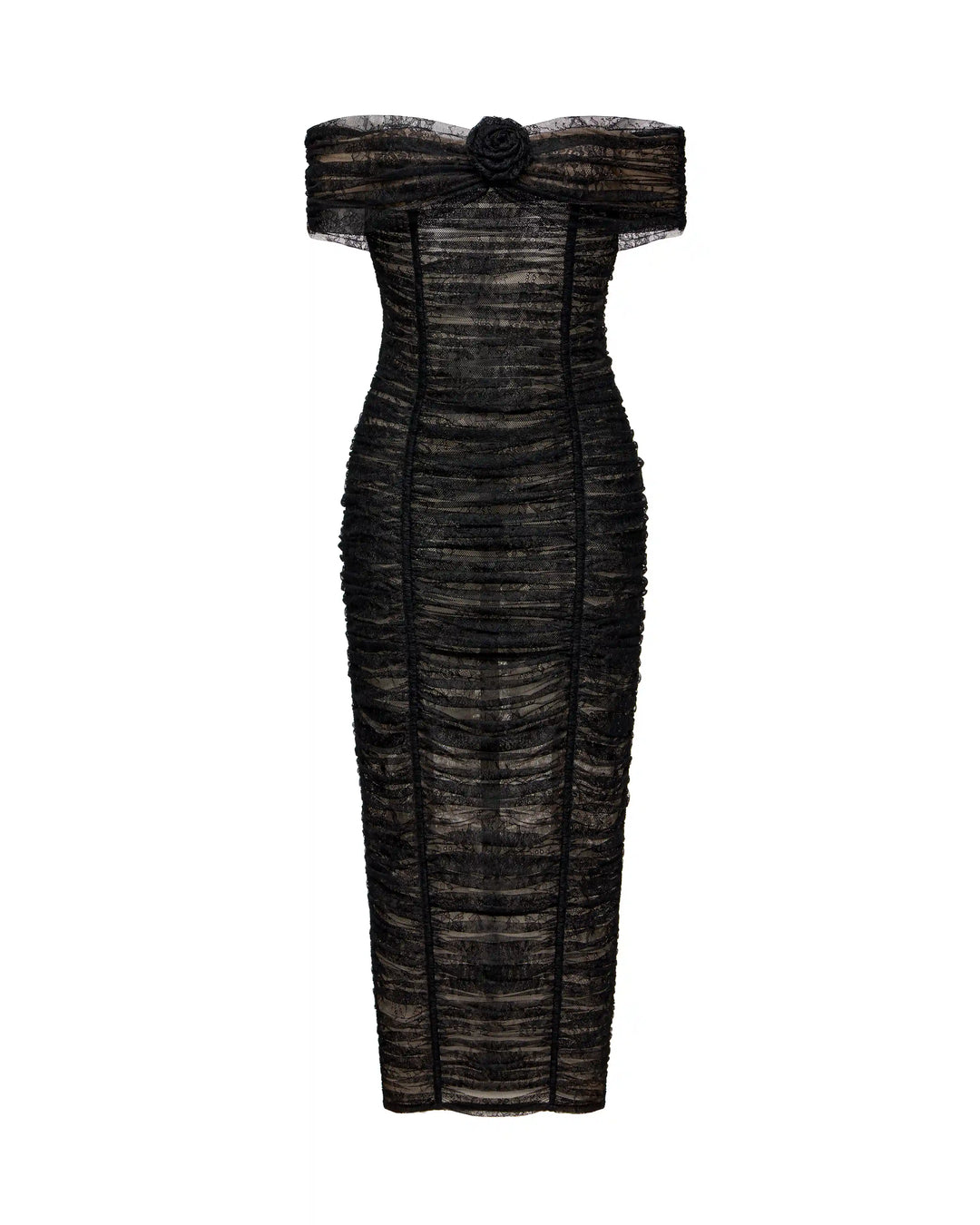 Stella maxi, maxi dress made of black lace with a skirt of black chiffon