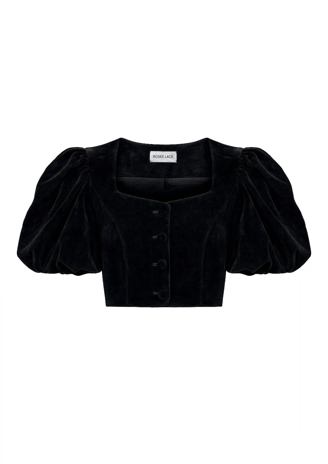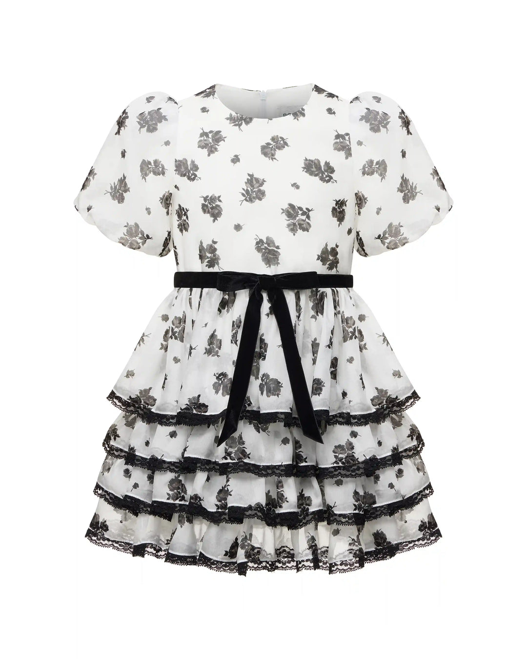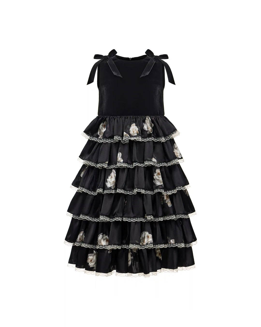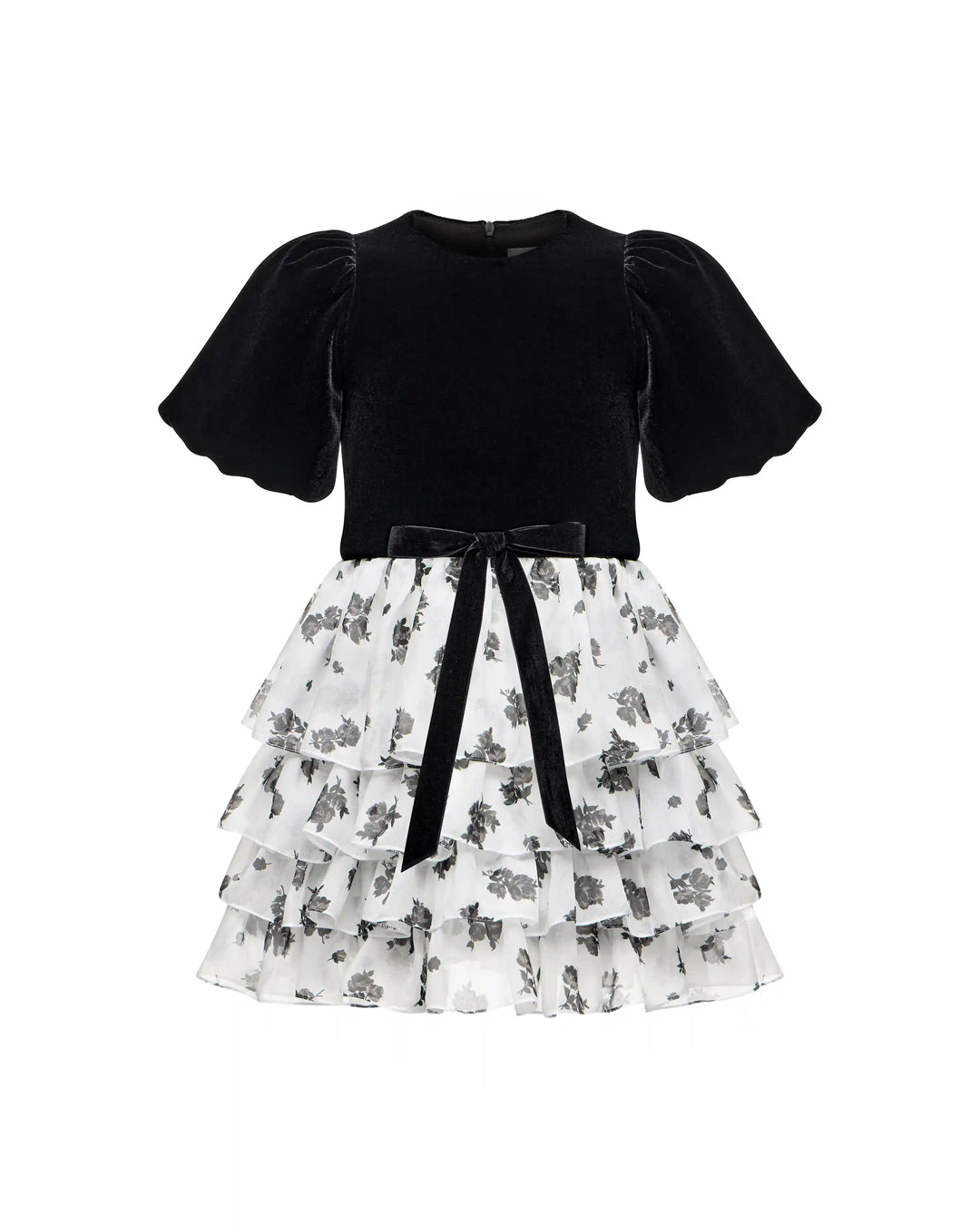 Fifi, children's dress made of black velvet and ivory chiffon with floral print