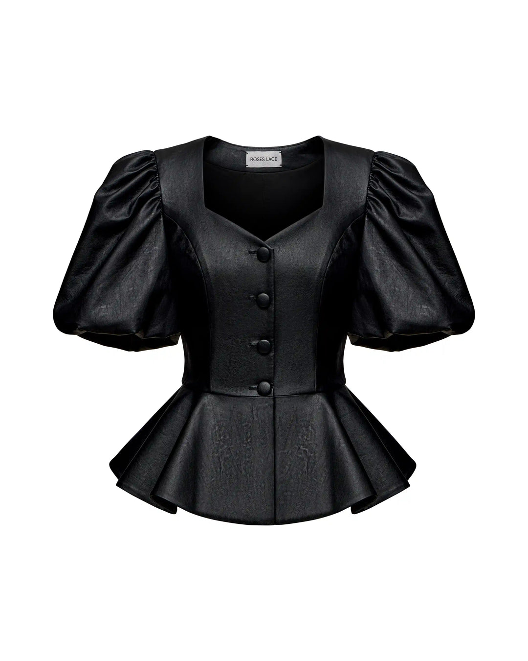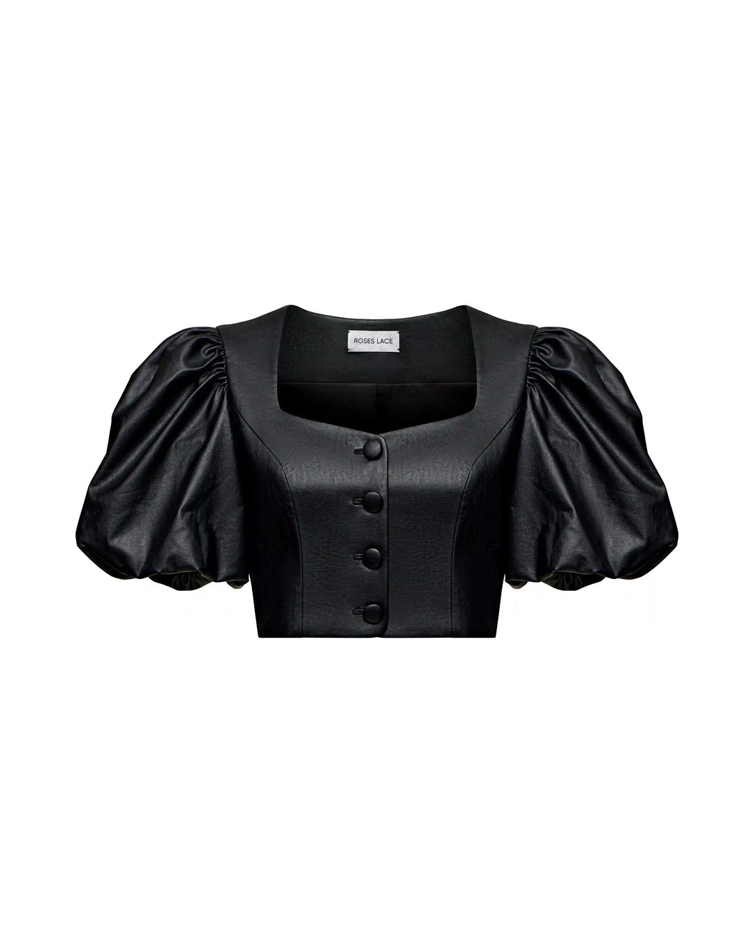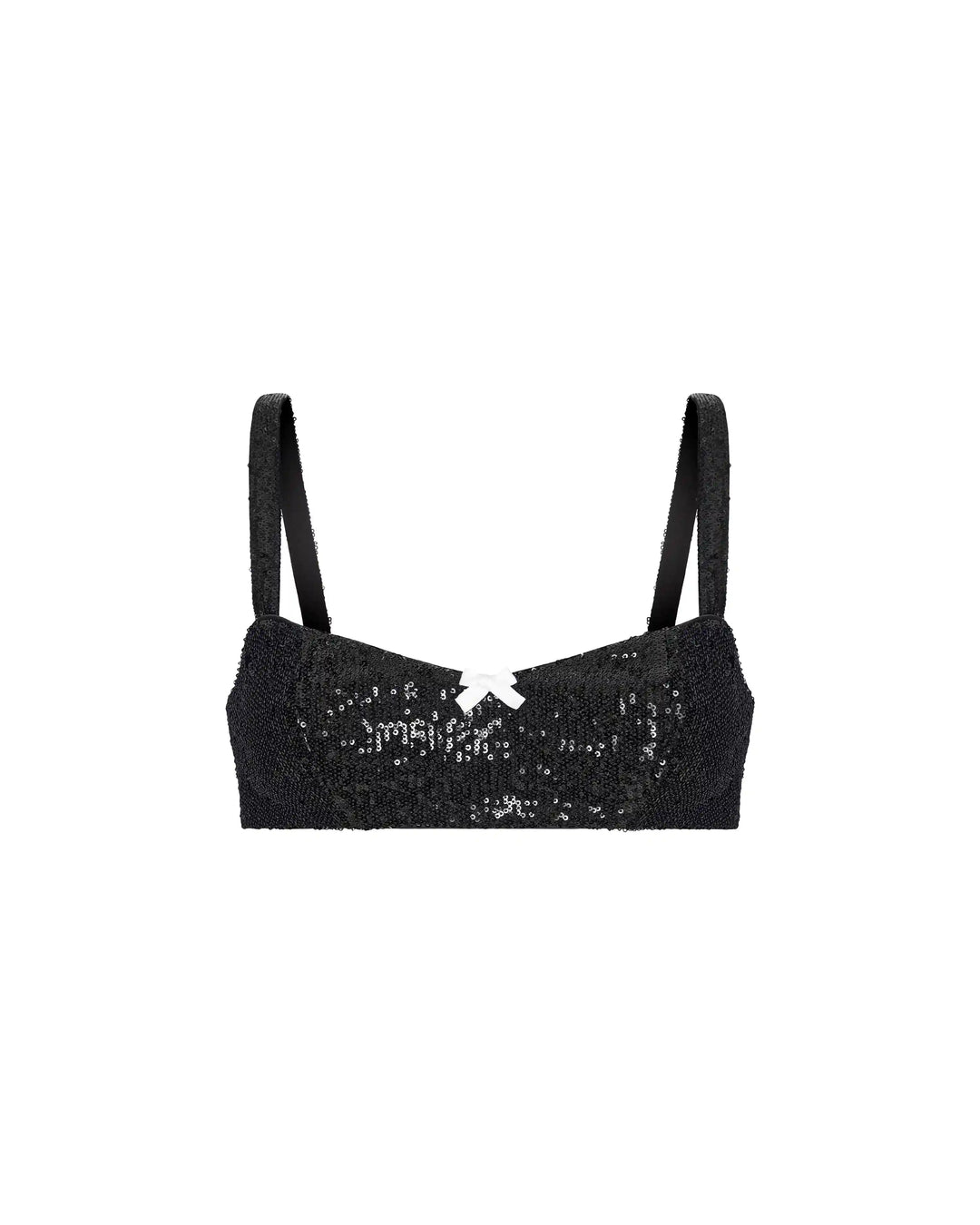 Lilian mini, mini dress with a black sequin bodice and a balloon skirt in black taffeta