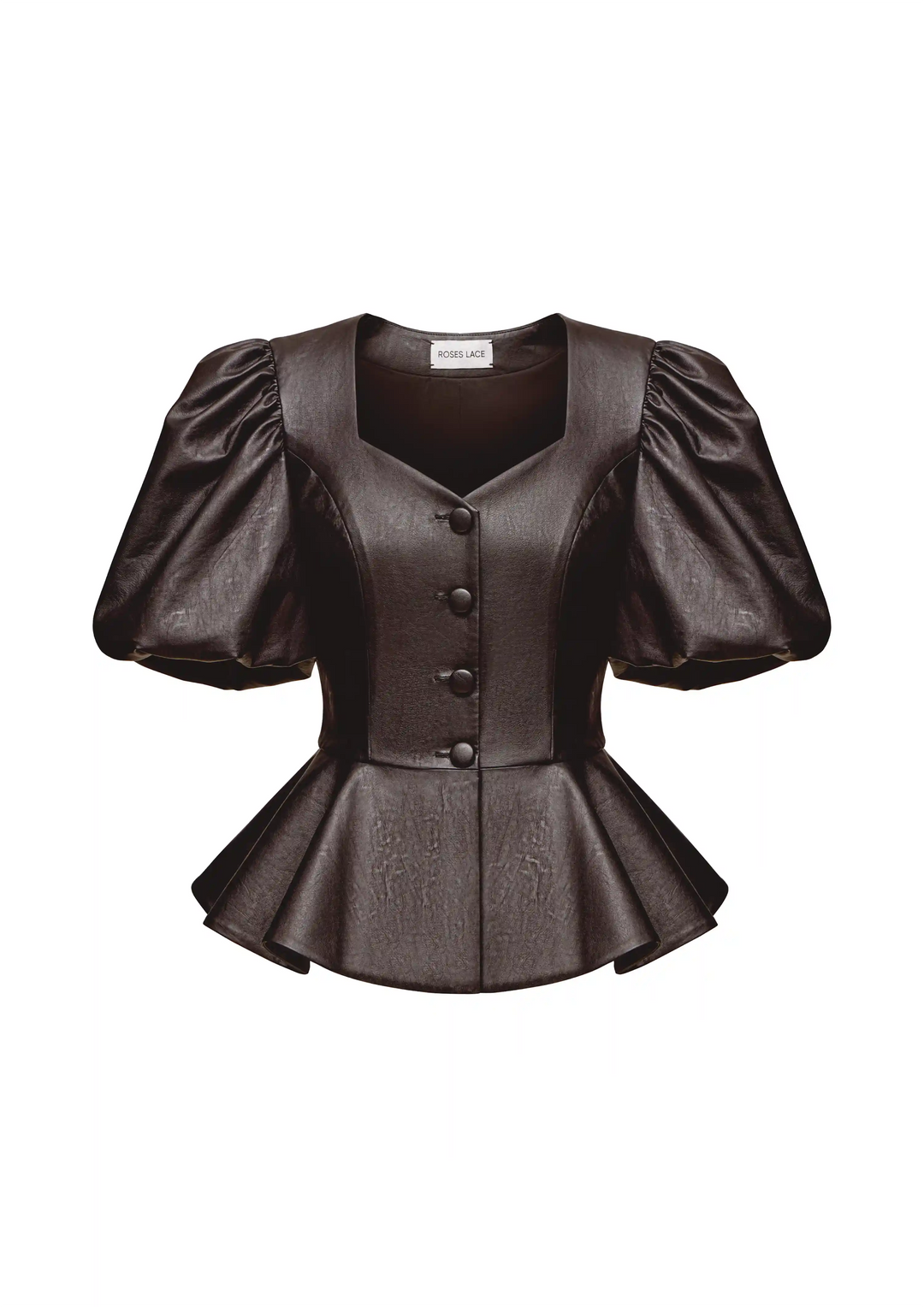 Kerelin midi, midi skirt made of chocolate eco-leather