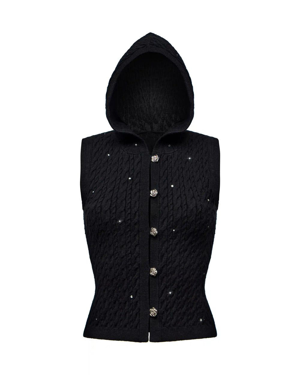 Hope-Queenie, knitted set with pants made of black viscose with rhinestones