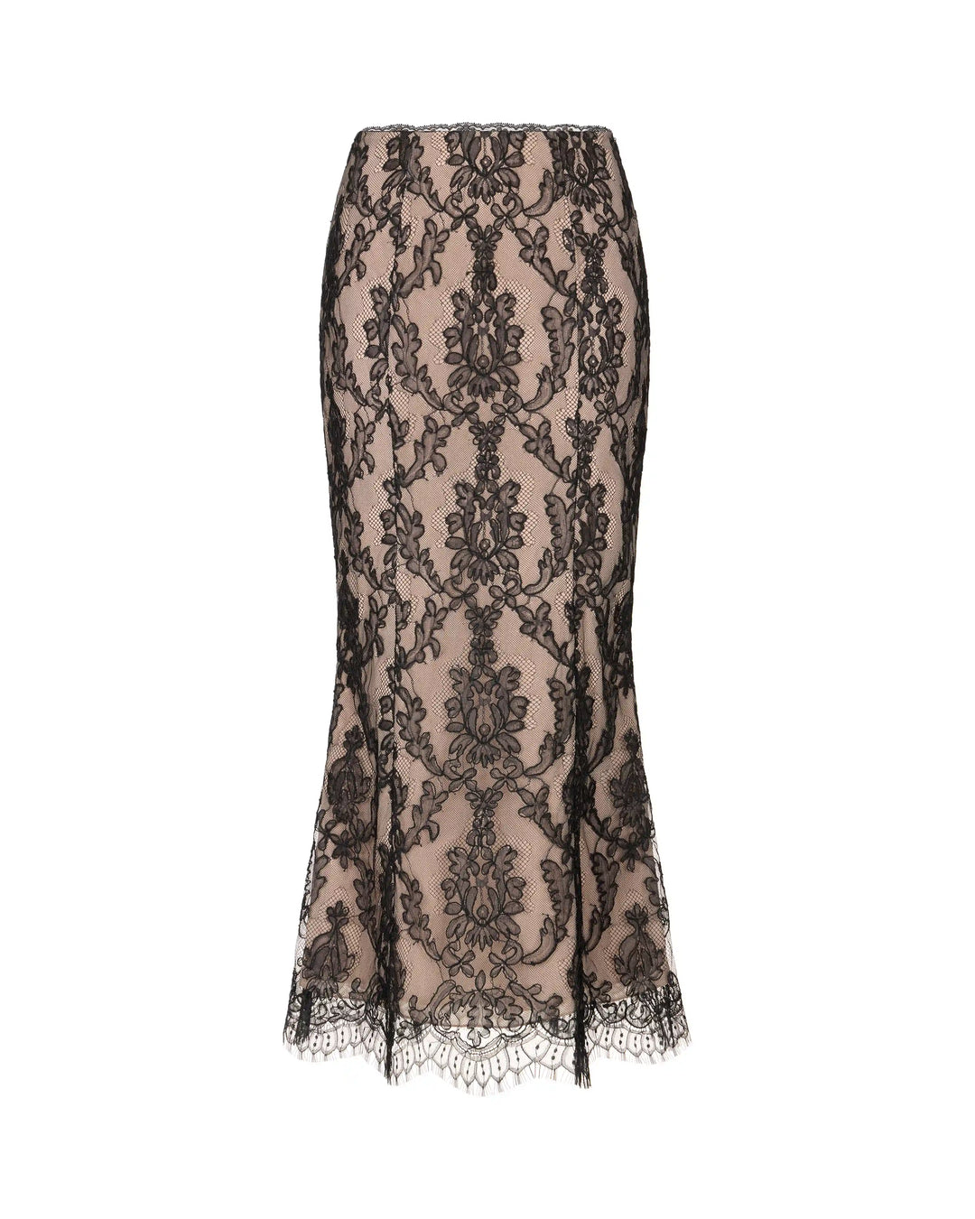 Celine midi, midi dress made of black lace with a skirt of black satin